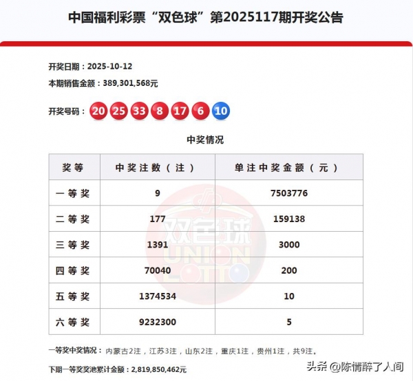 上周日晚双色球25117期开奖,在上期双色球开出3注一等奖后,本期双色球奖池滚存为28亿。本期开奖号码:红球:6、8、17、20、25、33蓝球:10,蓝球开出了偶数10号,红球开出了3枚重号。