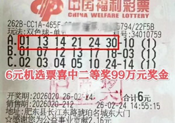 2025年2月24日,双色球第2026020期开奖,迎来春节后的首期开奖。这一期开出一等奖2注,每注奖金高达1000万元,二等奖则中出64注,单注奖金达99万余元,创下近十五年来的新高。