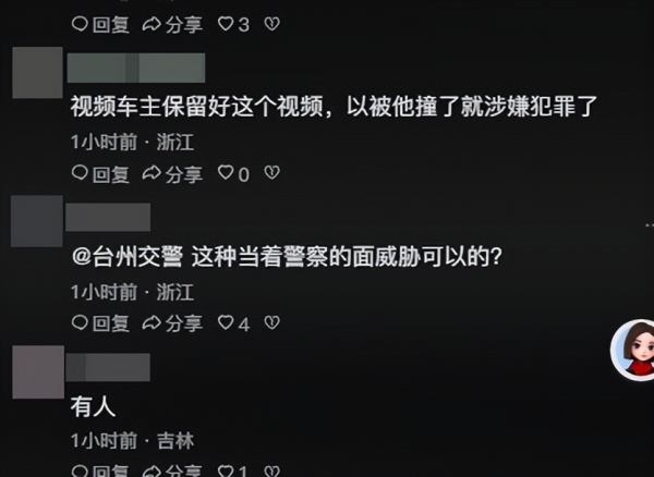 不少网友直言,当着交警的面都敢放狠话,若无执法人员在场,很难想象会做出更过激举动,这种无视他人安全、肆意恐吓的行为,严重动摇了大众对道路安全的信任感。