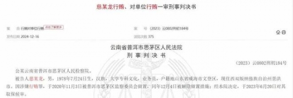 到了1月15日,国家医保局发布了一个特别案例,山东某集团医用高分子制品股份有限公司昆明销售分公司业务员慈某龙贿赂医务人员案。