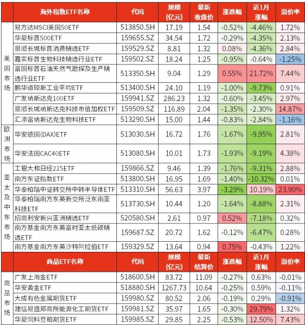主要海外指数ETF: