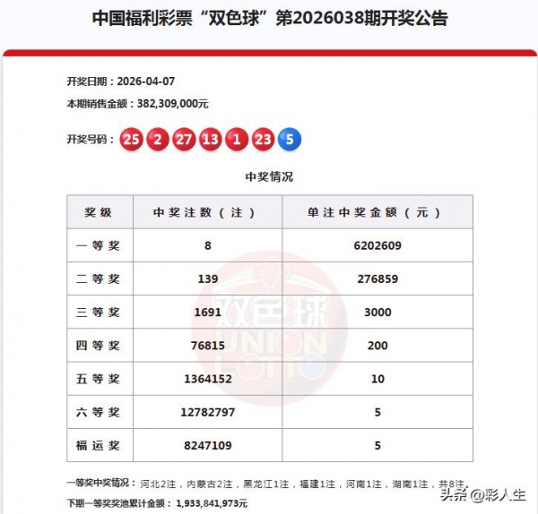 双色球26038期开奖结果: