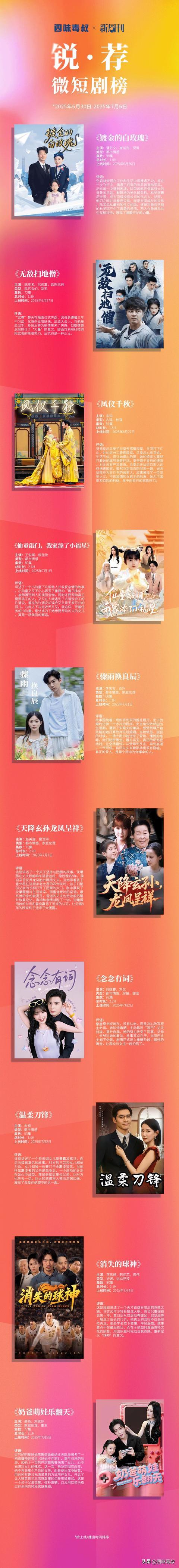 本次「锐·荐微短剧榜」周榜第20期(2025年6月30日--2025年7月6日)