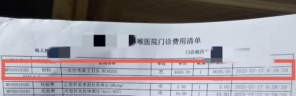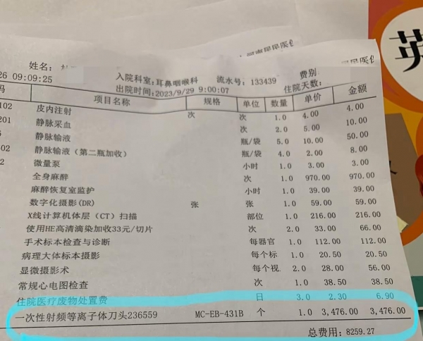她觉得,刀头价格这么高,医院有责任提前说明,让患者和家属可以选择是否要用,结果一直到术后结账,全家人才知道这项收费。