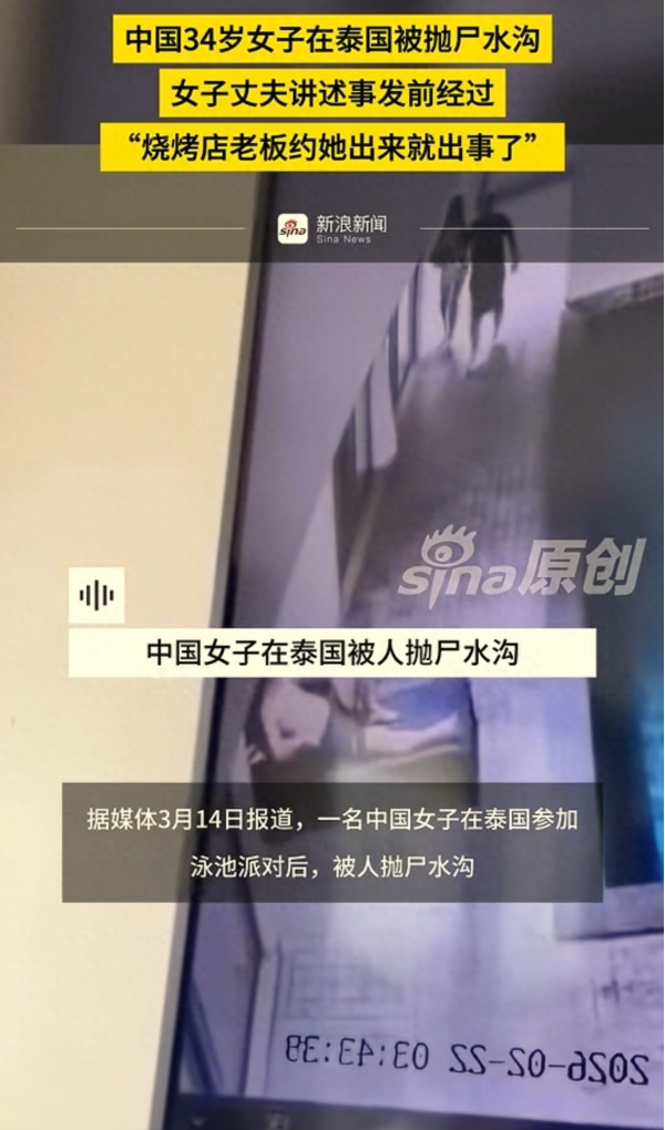 近日,中国一34岁安徽籍女子在泰国被抛尸水沟,女子的丈夫张先生讲述了事发前的经过。说烧烤店老板约他妻子出来,就出事儿了。他希望能查明真相,给他妻子一个公道,给家属一个交代。关于烧烤店老板约他妻子的事,是张先生事后在妻子手机里看到的。