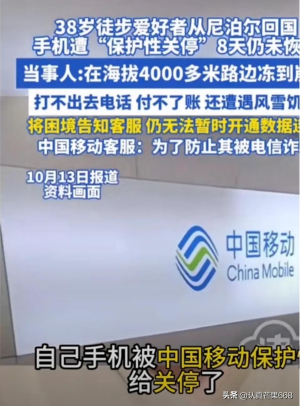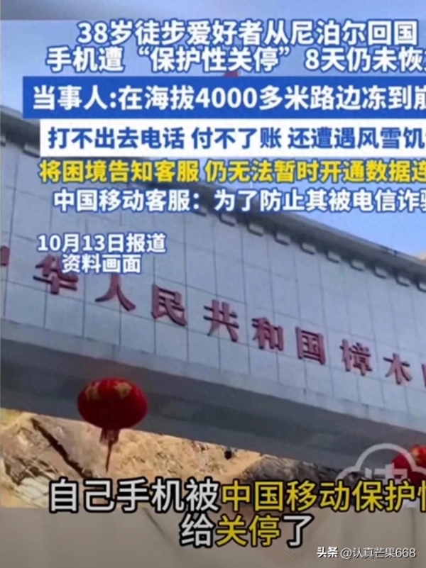 10月5日,李先生从尼泊尔经樟木口岸回国时发现手机停机。他最初以为是欠费,充值后仍无法使用。当时聂拉木地区已持续降雪两天,全城停电。李先生仅穿着适合零上10度环境的冲锋衣,在零下气温中面临严重失温风险。他联系中国移动客服,被告知为防止电信诈骗,号码被保护性关停。客服表示必须本人前往营业厅办理复机,拒绝临时开通网络服务的请求。