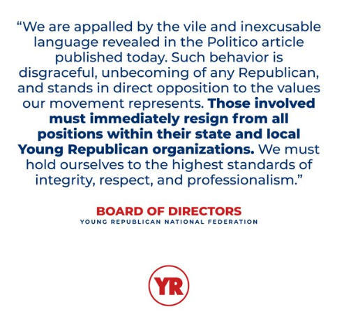 青年共和党全国联合会主席海登·帕吉特则发表声明指出,该组织"谴责一切形式的种族主义、反犹太主义和仇恨"。声明强调:"我要明确指出,这种行为完全不符合我们的价值观,在我们的组织或更广泛的保守运动中都不应存在。"