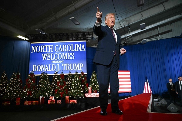 12月19日晚,特朗普在北卡罗来纳州发表讲话。 视觉中国