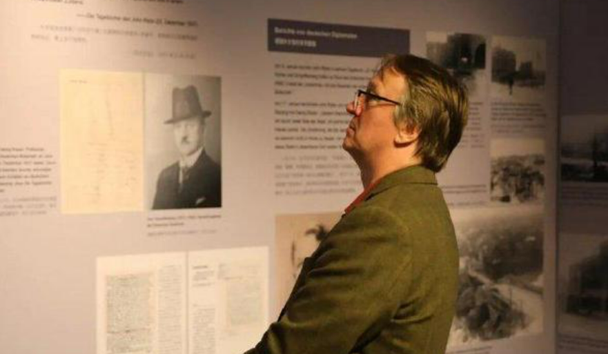 2025年9月29日,在德国柏林中国文化中心,参观者在南京大屠杀主题展览上参观/新华社记者 杜哲宇 摄