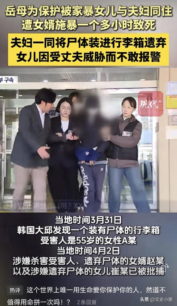 2026年4月3日曝出的这起韩国惨案,看完只觉得又痛心又气愤!一位母亲为护女儿逃离家暴,最终却命丧女婿之手,而女儿的懦弱沉默,更是让人心寒到极致。