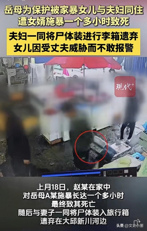 更让人无法接受的是,岳母死后,女婿不仅威胁妻子不准报警,还逼迫她一起处理尸体。而这位常年被家暴的女儿,竟真的因恐惧选择顺从,和丈夫一起将母亲的尸体装进行李箱,扔进了河里。