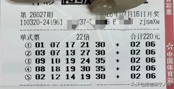 在今晚的晒票中,其中5组22倍单式、千元复式复式,接下来让我们一起来看看他们的中奖情况:其中5组22倍最高命中了2+0,独蓝成功,千元复式最高命中2+0,一起来欣赏下