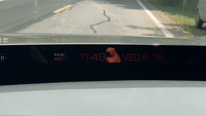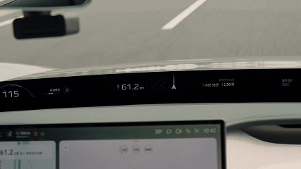 它的体验和之前一些车型上那种长条状的「带鱼屏」是完全不同的。因为是投影,它的视觉焦点在更远处,你的眼睛不需要在观察路面和近处屏幕之间上下来回切换焦距,读取信息更加方便,长时间驾驶下来眼睛也不会那么累。