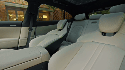 它的豪华感,首先来自那些触手可及的大面积 Nappa 真皮和软包覆,官方宣称其用料达到了「婴儿可直接触碰」的母婴级标准。前排的两张零重力座椅坐垫厚实,包裹感与支撑性都属上乘,在长途驾驶中确实能有效缓解疲劳。
