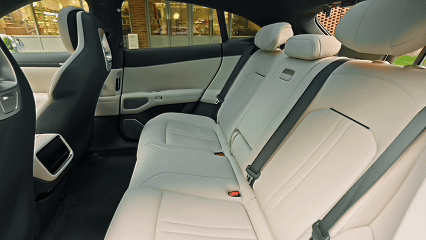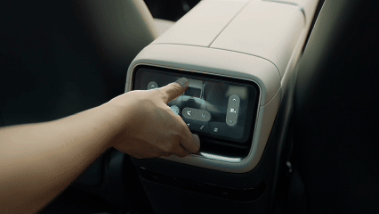 至于后排的配置亮点,首先要介绍的是放倒角度达到了 135°的座椅靠背--这是一项全系标配的配置。与此同时,小米在后排乘客的前方设置的了一个可以取下的控制屏,座椅、空调、音乐、导航等内容均可在此调节。