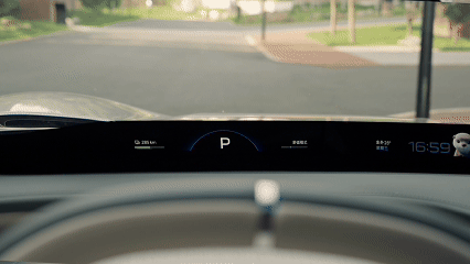 其次,它的信息布局也很合理。关键的行车信息,如车速、挡位、续航等,会始终保持在驾驶员的视野正前方;而导航、盲区影像等辅助信息,则只在需要时才会出现,毫不打扰。