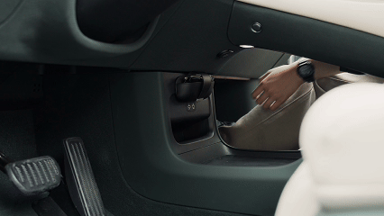 第一个,是它的「磁吸生态」。YU7 在全车预留了多达 16 个磁吸点位,你可以把一个能自定义功能的蓝牙按键,吸在任何你最顺手的地方;也可以把一个设计精巧的磁吸纸巾盒,牢牢固定在仪表台上;下方还可以储存一个磁吸墨镜盒。