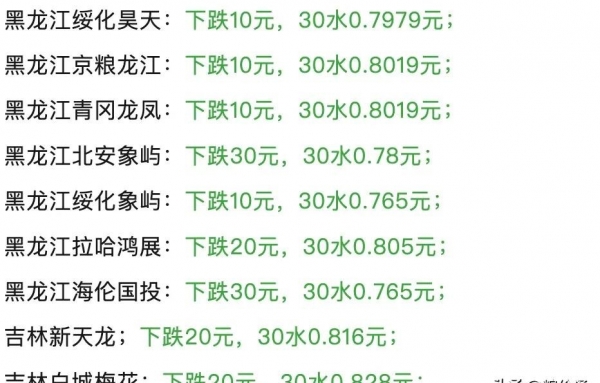 十月八号最新动静,东北玉米价还在往下掉,黑龙江吉林都跌,不过听说后面跌幅要小了。为啥?节后卖粮人可能少,加上大企业要来抢粮,竞争起来价格就稳了。