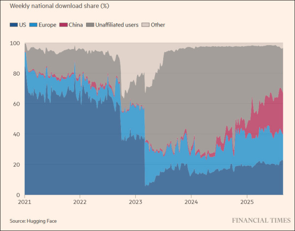 Hugging Face统计的开源模型下载量占比 《金融时报》报道截图