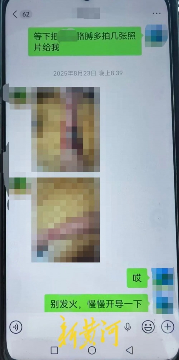 张先生称,事情发生后,小君常常崩溃或者做噩梦,之前还多次离家出走,现在又独自跑到江西。2025年8月,事情发生两个月后,妻子给张先生发来小君拿小刀划自己手臂的画面,血染红了她的手臂。妻子哭诉:"两个手臂全是口子,现在她心情不好,说了她还发火不让我进去,看都不让我看。"张先生说:"别发火,慢慢开导下。"