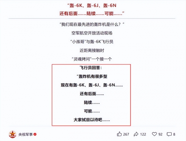 央视新闻在最新报道中,明确提及轰-6N等机型还有"后续机型",并让大家拭目以待--这几乎是摆明了在暗示传说中的"轰-20"。