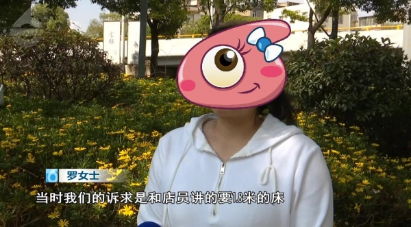 罗女士:"当时我们的诉求是和店员讲的要1.8米的床,然后她就给我们推荐了一款。当时我们比较喜欢那款床,因为我们没有经验,但是她没有告知我们床的两边有加宽,回去之后,如果刚好是1.8米的床没有加宽的话能放下,结果两边加宽了就有2米多,拿回去就放不下了。"