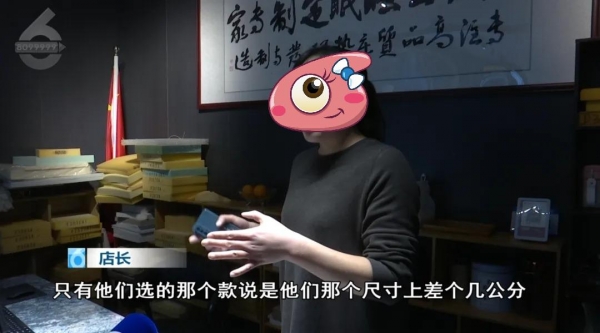 店长:"只有他们选的那个款,说是他们那个尺寸上差个几公分,其他的款完全都可以摆下。他们既然喜欢那个款,我们就给她定制那个款,大概一周左右能到,也不耽搁他们结婚,我们是这样给她协调的,但是他们这边就是不同意。然后就说是要不换个床垫吧,因为床垫都是标准的1.8米乘2米的,都可以,他们也不同意。"