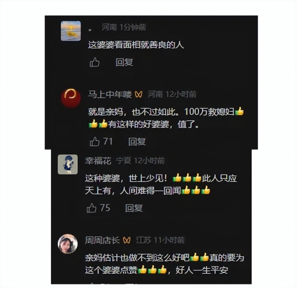 有网友感慨:"这才是真正的婆媳关系,不是母女胜似母女。"还有网友表示:"看哭了,婆婆用行动诠释了什么是母爱无私。"