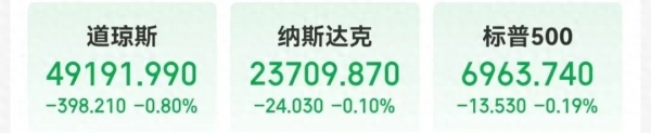 当地时间1月13日,美股三大指数齐跌。道指下跌398.21点,跌幅0.80%;纳指跌0.1%,标普500指数跌0.19%。