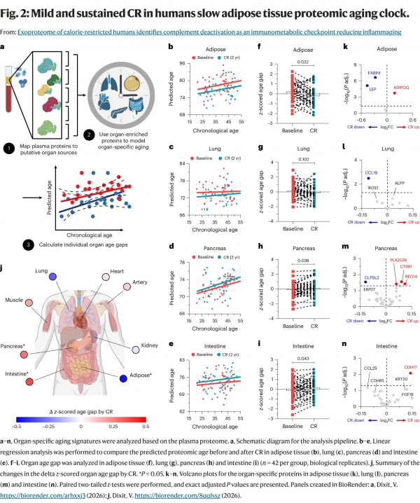 数据显示,热量限制后,参与者血浆中多条补体通路被显著抑制,尤其是核心分子C3a的水平大幅下降。值得注意的是,这种下降与体重减轻无关--即便你瘦得不多,只要坚持少吃,C3a依然会乖乖低头。