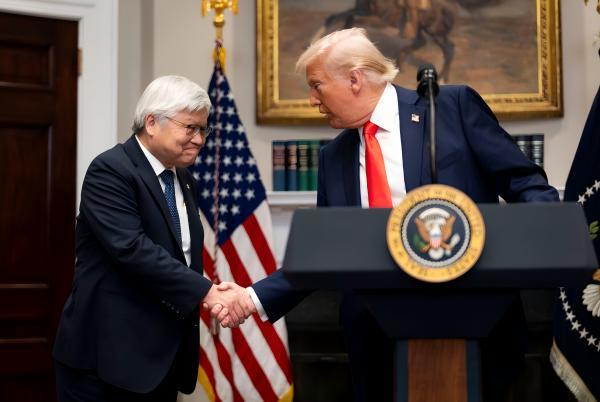 2025年3月,特朗普在白宫会见台积电首席执行官魏哲家 纽约时报