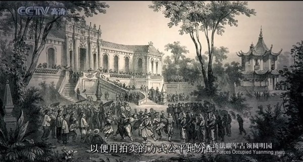 央视记录片《圆明园》剧照:英法联军抢掠、拍卖圆明园文物并焚烧圆明园