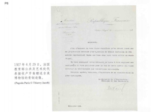 《卢芹斋P8》插图:法国吉美博物馆给卢芹斋的感谢信
