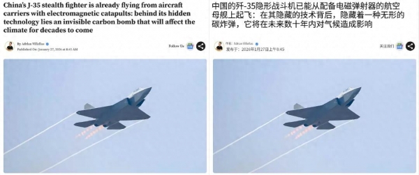 近些年,中国先进武器装备的密集亮相,显然已经对西方世界形成了不小的心理冲击。从福建舰电磁弹射航母,到歼-20A/S、歼-35隐身战斗机,再到PL-17、各型无人机与高超音速武器,几乎每一项都在刷新外界对中国军工水平的认知。而在"正面比拼"越来越难占上风的情况下,部分西方媒体也开始不断尝试各种"刁钻角度",试图在舆论场上找回一点优势。只是,这一次的角度,确实离谱到了让人绷不住。
