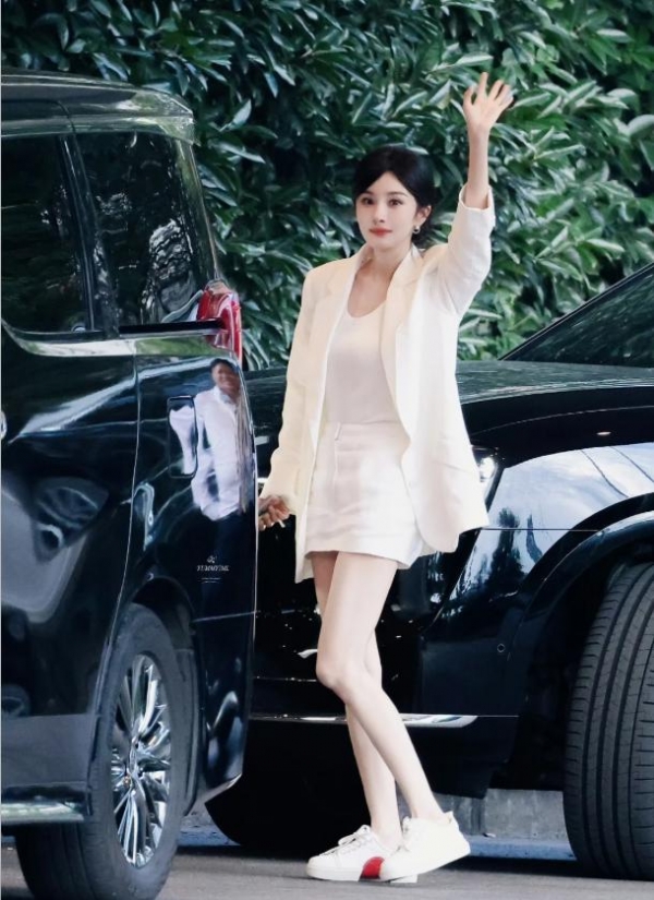 杨幂的平底鞋多数带有2-3厘米左右的隐形内增高或微坡跟,这种设计既避免了高跟鞋对脚部的伤害,又能让整个人的站姿更加挺拔有精神。