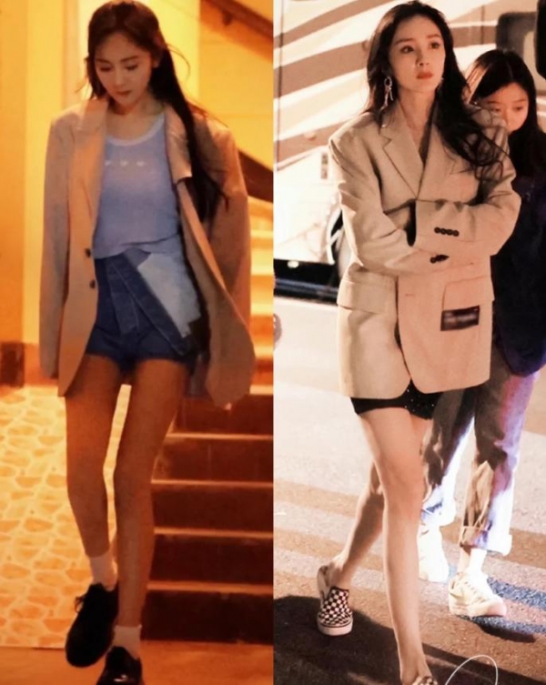 最近,杨幂又带火了一组"西装+平底鞋"的搭配,上身之后,看起来不仅帅气利落,更让她整个人年轻了十岁!