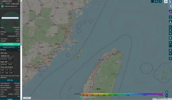 据岛内媒体和公开航迹数据披露,在美舰过航期间,两架解放军直-10武装直升机自福建莆田方向起飞,进入台海中部航道区,对美舰实施长时间、近距离、伴随式跟监警戒。更关键的是,直-10并未刻意"隐身",而是主动开启ADS-B广播式自动监视系统,公开自身位置、航向、高度和速度信息。