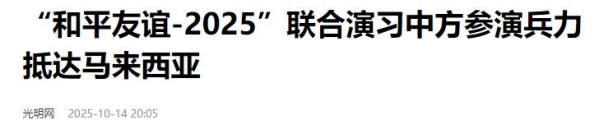 本次中马"和平友谊2025"联合军演,于10月15日正式启动,将一直持续至10月23日,双方共投入多兵种参演兵力1000余人,演习将在陆地、海上和空中同时展开。