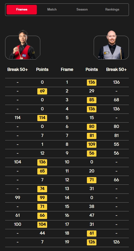 徐思9-10不敌加里·威尔逊,无缘斯诺克世锦赛正赛 2026-04-16 10:38 直播吧 直播吧04月16日讯 斯诺克世锦赛资格赛48进32轮次审判轮,徐思9-10不敌加里·威尔逊,无缘斯诺克世锦赛正赛。 第一阶段结束加里·威尔逊7-2领先徐思,第二阶段徐思连续追分,双方战至决胜局,最终加里·威尔逊10-9战胜徐思晋级正赛。