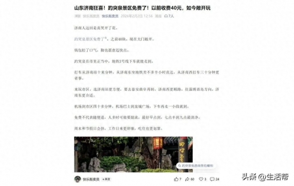 近日,记者发现有微信公众号在网上传播"趵突泉景区免费,以前收费40元,如今敞开玩"等信息,引起不少网友讨论。