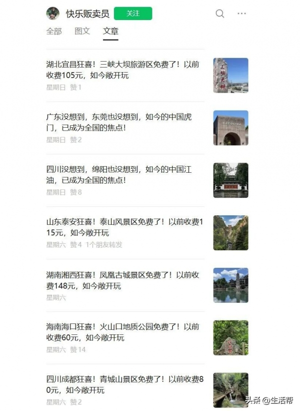 据了解,最近几年,造谣景区"免票"的情况时有发生,西安、连云港等地文旅部门近年来就曾对"所有景区免门票"等虚假信息进行辟谣。