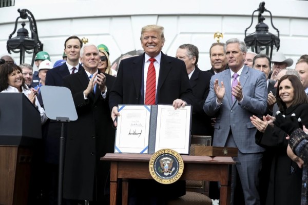 2020年,时任美国总统特朗普展示了签署的《美墨加协定》。 彭博社