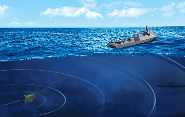 水下环境复杂。海水温度、盐度、密度变化,会形成跃层。跃层对声波传播影响很大。普通声呐很难穿透。潜艇常常利用跃层隐蔽自己。拖曳阵列部署在远离舰体的深水位置,受本舰噪声干扰小,对跃层下目标的捕捉能力更强。