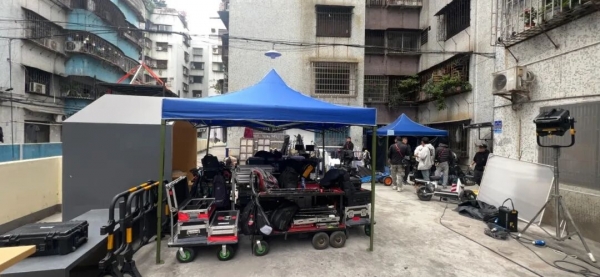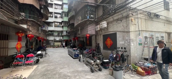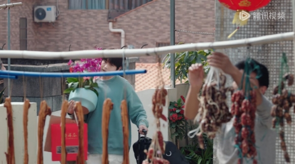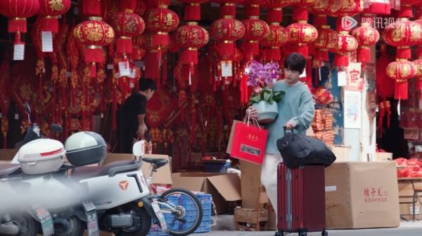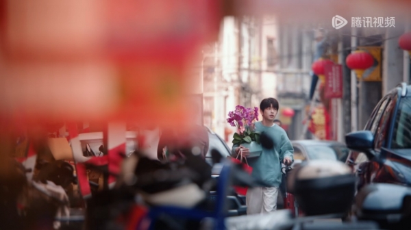 彭昱畅抱着蝴蝶兰走过骑楼街