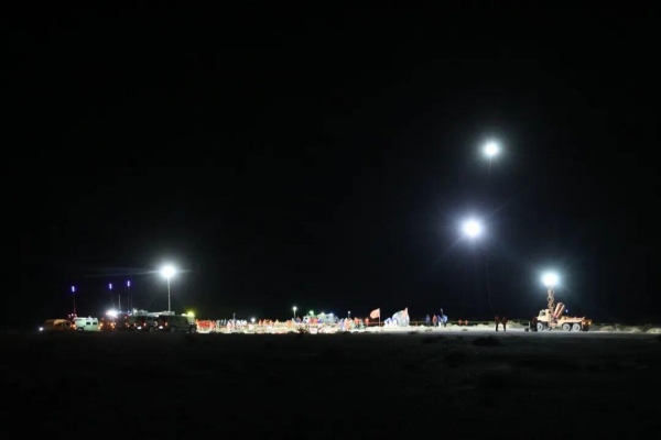 搜救队员蔡超超说:"这次是东风着陆场第三次在夜间执行航天员搜救任务,针对这次夜间搜救的特点,我们加强了夜间搜索现场处置通信保障等训练,着重强化了照明保障。着陆现场,我们设置3套便携式照明灯,地面车辆到达后会架设两套广场灯,在直升机降落后,还将升起3架照明无人机,这样现场会形成一个立体的照明效果,为航天员点亮归航之路。"