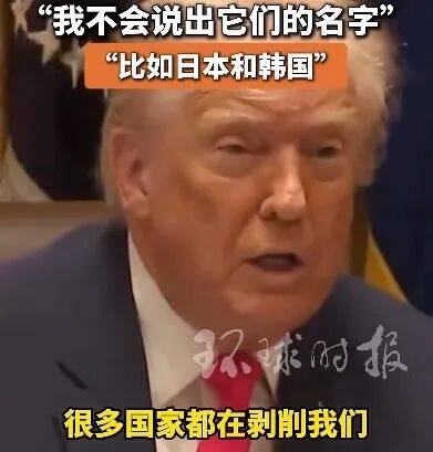 "很多国家都在剥削我们,包括我们的盟友,他们多年来一直在剥削我们。我不会说出它们的名字,我不会提到日本,我拒绝提到韩国。"特朗普在发言中称。