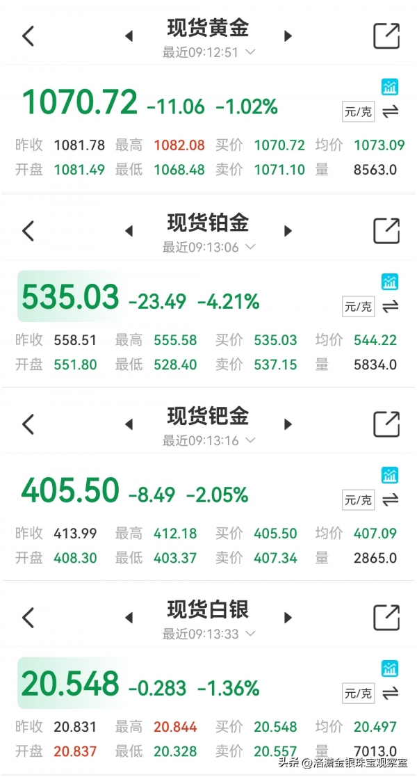 一、今日金价(实时金价,实时波动)