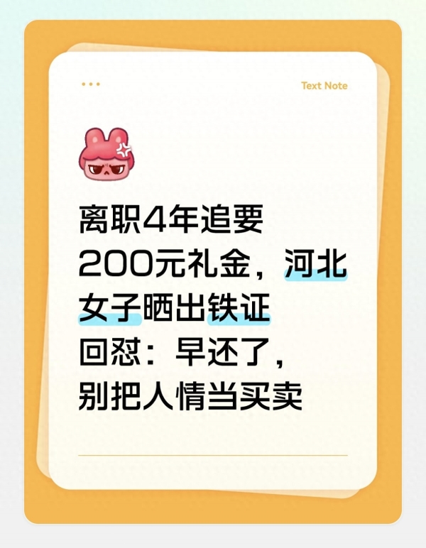 本以为故事就此结束,没想到2026年3月,也就是赵女士刚生完宝宝不久,那位前同事突然发来消息。开篇直奔主题,直言"这几年没联系,主要是工作忙,现在也不办宴请了,当初那200块礼金,你看是不是能退我一下",语气生硬,毫无缓冲。