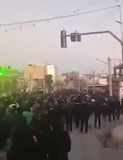 伊朗伊拉姆省马勒克沙希的示威人群 视频截图