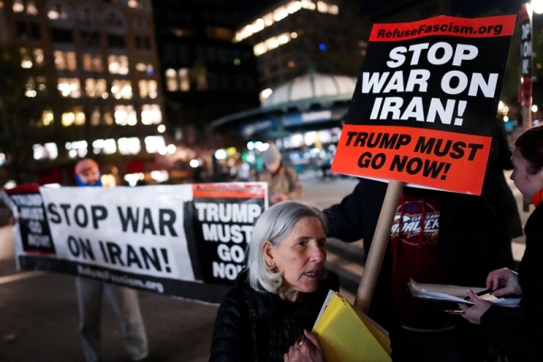 4月7日,美国纽约,美国总统特朗普同意与伊朗停火两周,民众聚集举行反战集会,抗议美以军事打击伊朗。 IC Photo